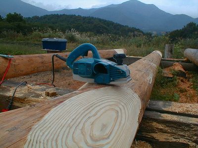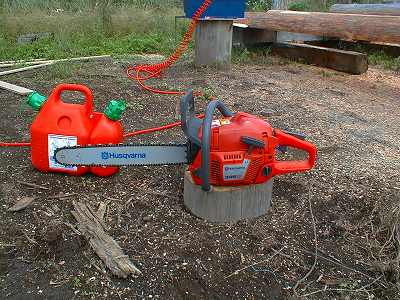 ハスクバーナ Husqvarna346XP 一番初めに購入したのがこれです。ただ、買ってからはなかなか使用する機会が無く過ぎてきましたが、やっとログハウスの作業をスタートして、バリバリに使用する機会が出てきました。 |