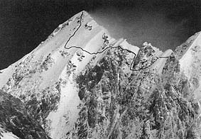 しかし、翌日も一部の隊員が再度この部分の突破を目指してアタックした。その結果、突破はならなかったものの、一度岩壁帯を左手に大きく下って巻くルートを発見した。これによって、いよいよ初登頂が現実的なものになってきた。
