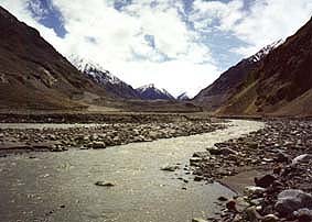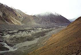 ![]() 中央上部にムスターグ峠がかすかに見える その奥はパキスタン |