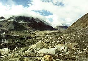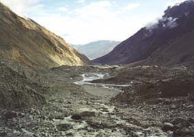 ![]() 迂回しているところから上流方面 少し氷河らしくなってきた |