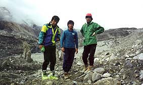 ![]() メンバー 左から長谷川、私、山崎 ![]() 出発 真ん中に、氷河末端がダムのように見える |
