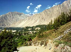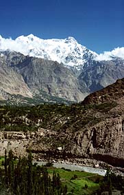 ![]() フンザのカリマバードからフンザ川の対岸にナガルの村を望む |